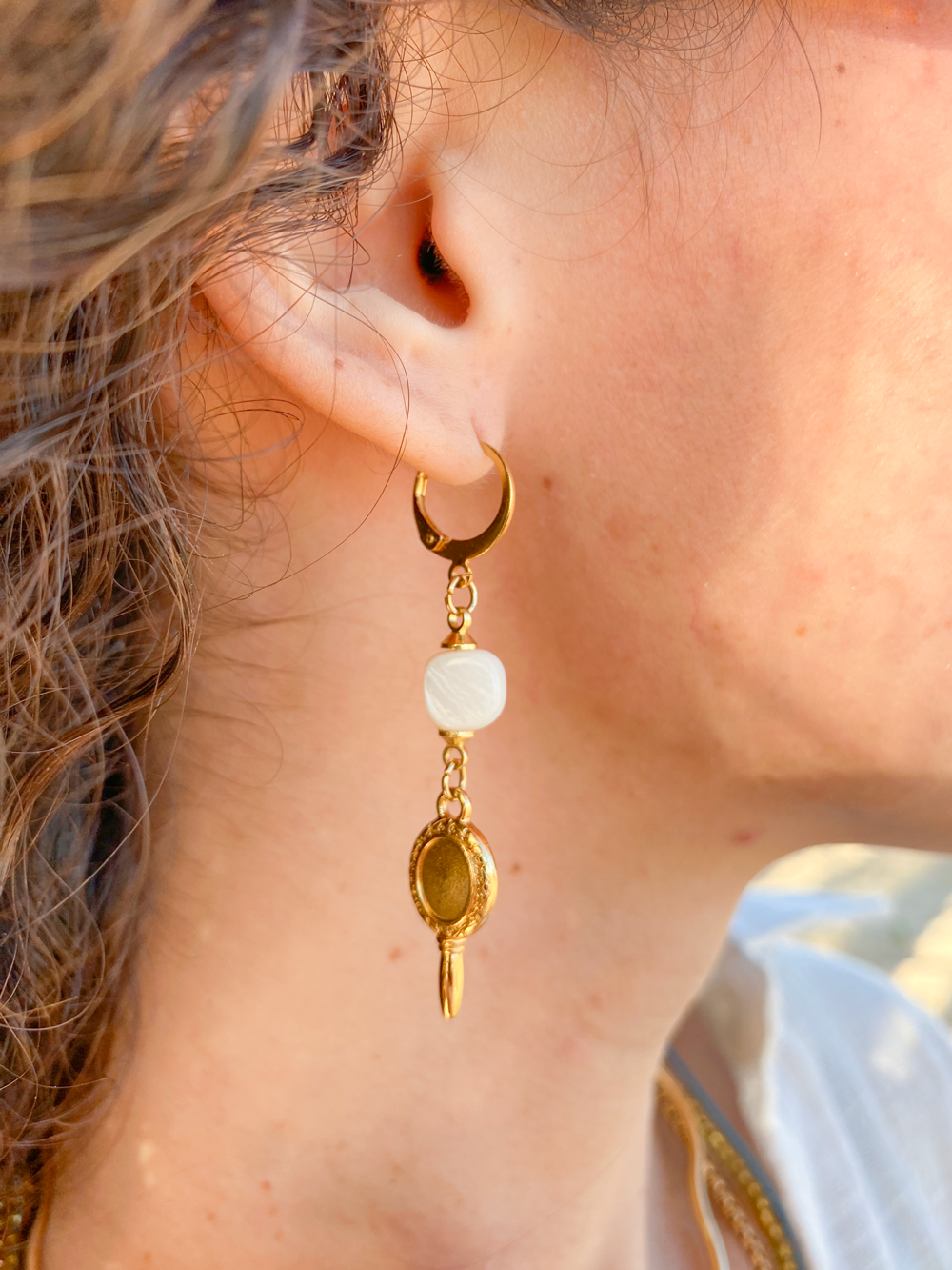 O Brinco Madrepérola é perfeito para ser combinado com colares e pulseiras de tons neutros ou acessórios com elementos naturais. Um acessório versátil e sofisticado que complementa qualquer look.