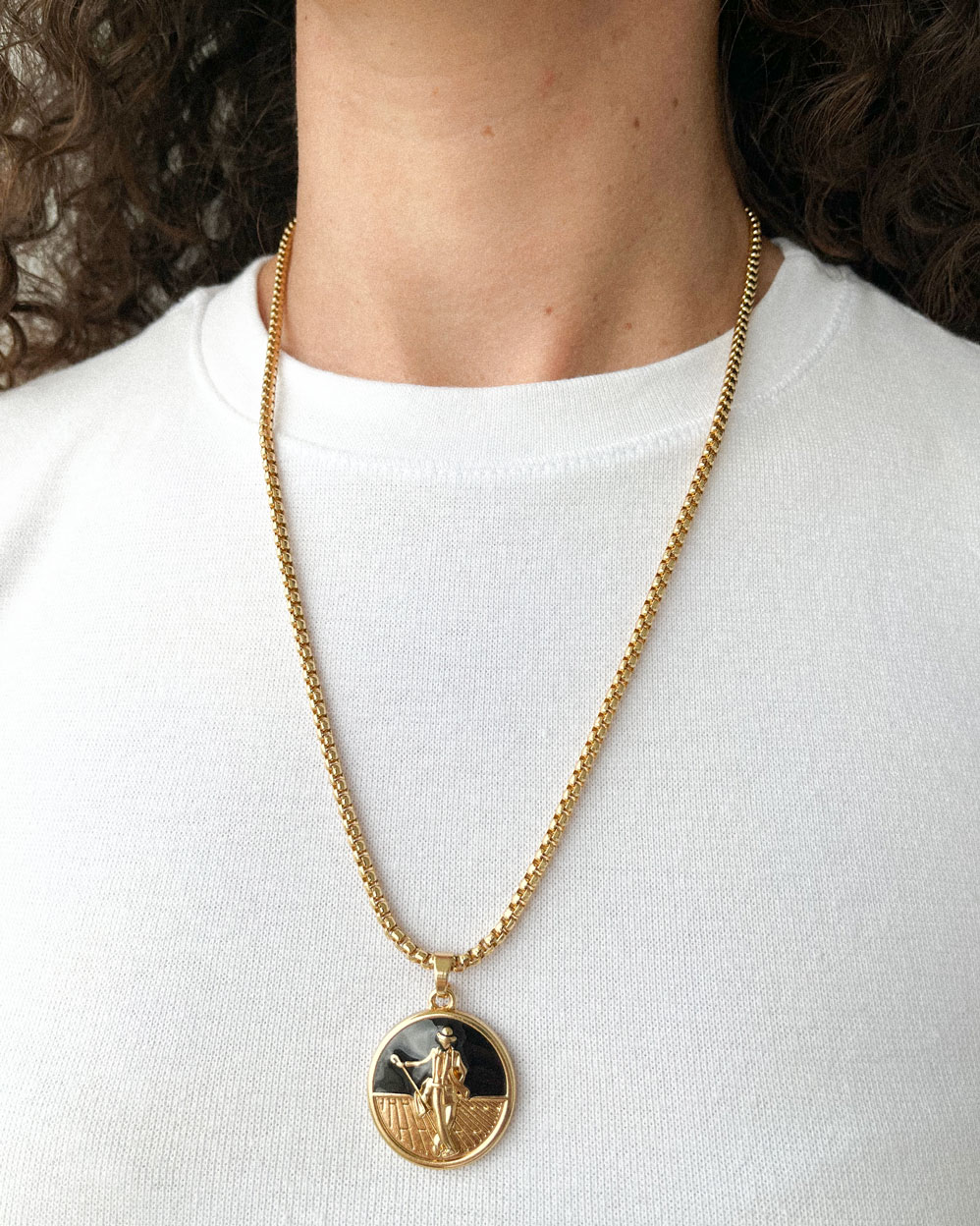 A medalha apresenta resina nas cores Preta e Vermelha, que simbolizam a Luta e a Vitória da Linha de Esquerda. A corrente possui o banho Dourado e um design elegante, sendo perfeita para uso diário. O acabamento em resina na medalha proporciona cores vibrantes e duradouras. O comprimento da corrente veneziano é ajustável, garantindo conforto e caimento perfeito.