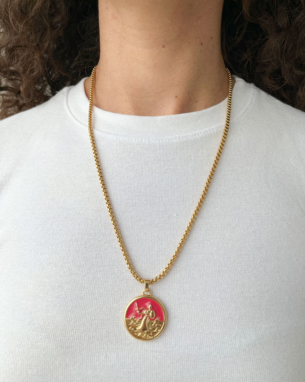 A corrente possui o banho Dourado e um design elegante, sendo perfeita para uso diário. O acabamento em resina na medalha proporciona cores vibrantes e duradouras. O comprimento da corrente veneziano é ajustável, garantindo conforto e caimento perfeito.