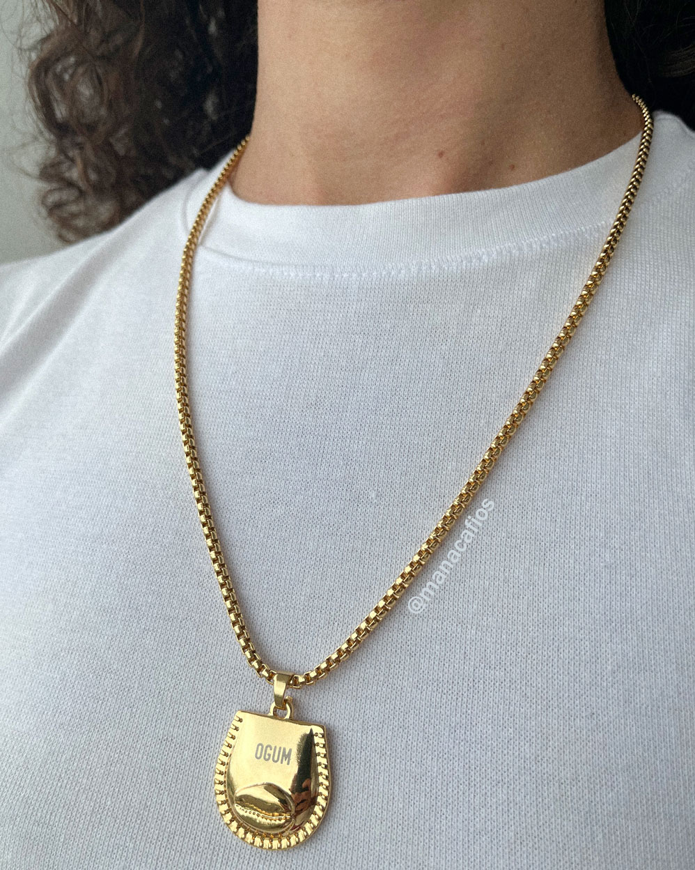 A Corrente Veneziano com Patuá de Ogum é uma peça exclusiva que une a sofisticação da corrente veneziano ao poder do fundamento. O Patuá é um amuleto carregado com a força de Ogum, o Orixá da Lei, da Ordem e da Determinação. É a peça ideal para carregar Axé, coragem para vencer desafios e a energia da retidão.