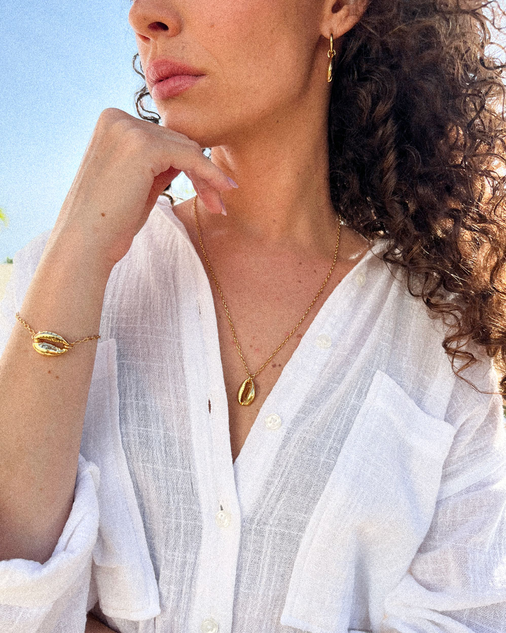 O Conjunto Maré é uma peça exclusiva, desenvolvida no ateliê Manacá, em Salvador- Bahia, terra de Axé. Trás como elemento principal o Búzio – um poderoso símbolo de conexão espiritual, proteção e sabedoria nas religiões afro-brasileiras. Confeccionado artesanalmente, este conjunto é a forma ideal de carregar a ancestralidade e o significado em seu visual, feito com responsabilidade e respeito.