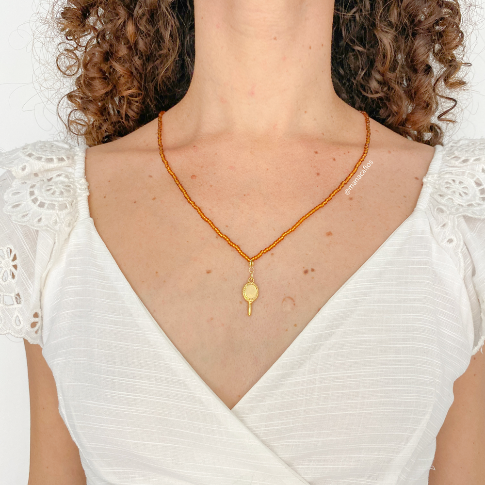 Com acabamento impecável, o escapulário é leve, confortável e perfeito para quem deseja carregar consigo a energia amorosa e protetora de Oxum no dia a dia. Suas miçangas de vidro de alta qualidade garantem durabilidade, brilho e sofisticação.